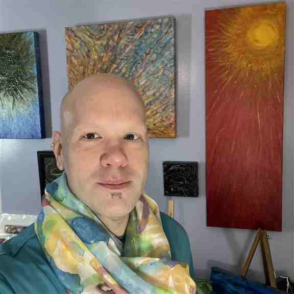 We create create distinctive artworks for art enthusiasts to bring color and whimsy to their venues: dollhouses, homes, corporate offices, and beyond -Our original artworks are in a variety of media including oils, acrylics, watercolor, pastels, ink, and mixed media [collage]. Our artwork imagery is almost as varied as our media usage; we create everything from realism to surreal / abstract artworks. We also hand-paint [not dip /vat dye] silk scarves as wearable and decorative one-of-a-kind artworks. Our most popular items are our 2x2" mini-masterpieces as a canvas with an easel, ornaments, or magnets; new for 2025 they'll also be available as pins! Several of our artworks are also featured on cards, prints, and ceramic ornaments.