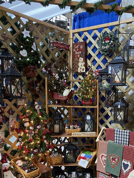 We handle country decor and seasonal decorations. We also sell soft sculpture dolls and wreaths. We carry light strings in green wire and brown wire, silicone bulbs and clear bulbs, Appliquéd tea towels and dishcloths are also available. Lots more products available.
