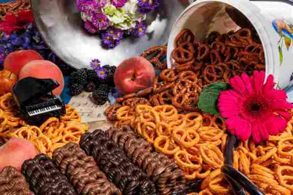 The tasty baked snack food that we know as the pretzel had its origin in southern Europe about 610 AD. The first pretzels were soft pretzels. These dough treats were given to the children as rewards for learning their prayers. The familiar shape of a twisted pretzel represents arms crossed over the chest in prayer. Pretiola (as they were called back then) means "little rewards" in Latin.Eventually soft pretzels came to America via Germany, Austria and Switzerland. The first American commercial pretzel bakery was founded by Julius Sturgis in Lititz, PA in 1861. At that time, the crispy (hard) pretzel was developed by Julius.