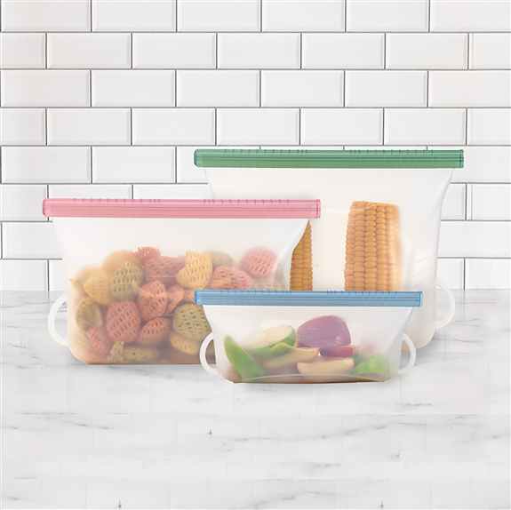 GRIPSTIC bag sealers save you money by extending the life of your food! Stop by our booth and see first-hand how they work. Stop throwing away stale/freezer burn food and keep foods fresh longer with GRIPSTICs…a must have kitchen gadget. The starter set includes all 5 sizes to cover bags in your fridge, pantry, freezer and more. If it’s in a bag, you can seal it airtight with a GRIPSTIC. Have GRIPSTICs? Check out our redesigned Steam + Store Bags. Steam vegetables and seafood. Reheat leftovers. Store stuff. Steam + Store Bags stand up and stay open. They roll up and are compact and easy to store when not in use.Product Images: